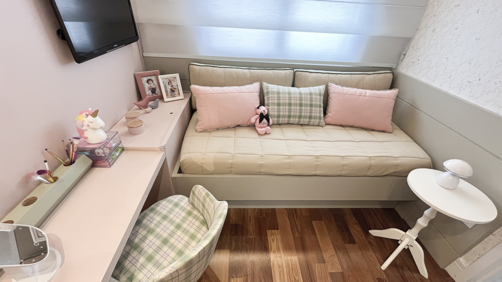 Complete seu quarto com um enxoval de alta qualidade, feito com tecidos selecionados e exclusivos para garantir conforto e durabilidade. Aposte em combinações que elevam o aconchego e a elegância do seu quarto.